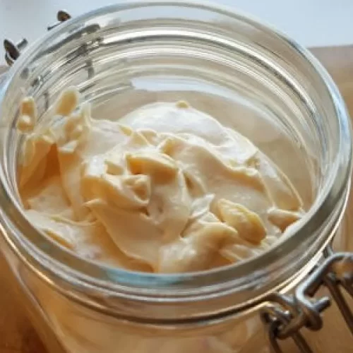 - Sätt i stavmixer och börja mixa med staven i bottnen, när det börjar bli majonäs börja lyfta på staven tills allt är mixat
